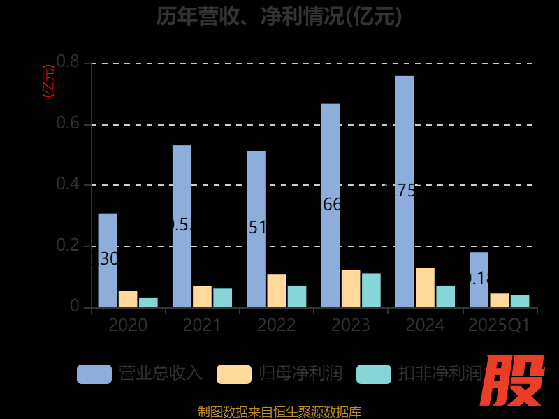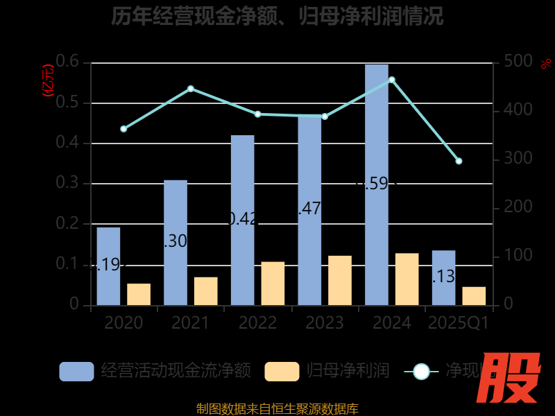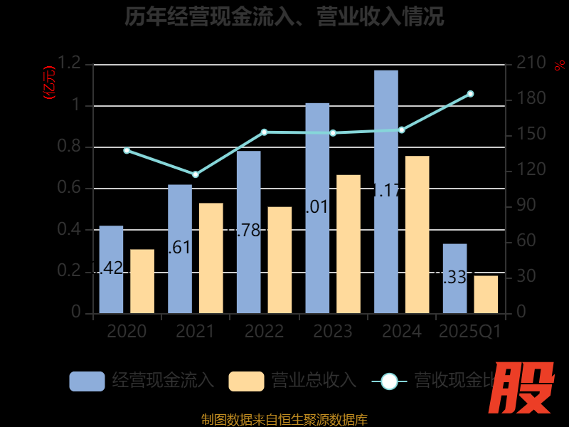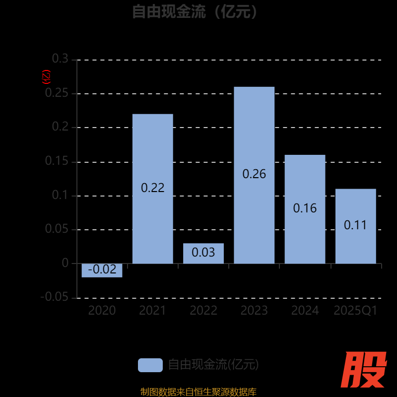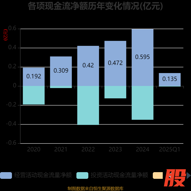 截至2025年一季度末,公司经营活动现金流净额为1346.06万元,同比下降34.99%;筹资活动现金流净额0元,与同期相比基本不变;投资活动现金流净额-61.82万元,上年同期为-482.9万元。