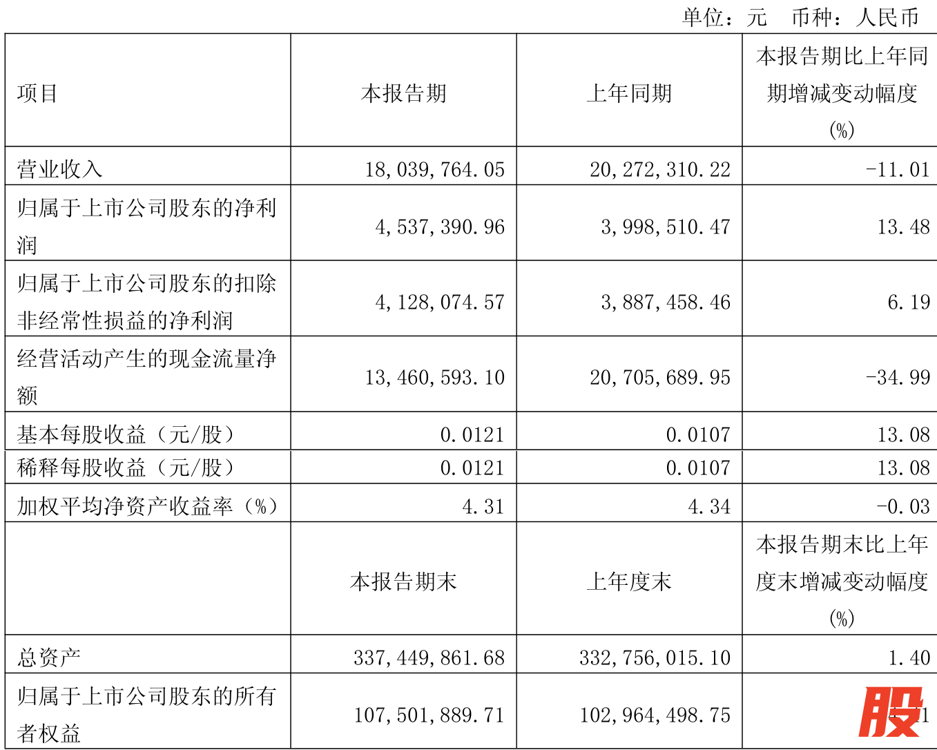 中证智能财讯祥龙电业(600769)4月26日披露2025年第一季度报告。公司实现营业总收入1803.98万元,同比下降11.01%;归母净利润453.74万元,同比增长13.48%;扣非净利润412.81万元,同比增长6.19%;经营活动产生的现金流量净额为1346.06万元,同比下降34.99%;报告期内,祥龙电业基本每股收益为0.0121元,加权平均净资产收益率为4.31%。