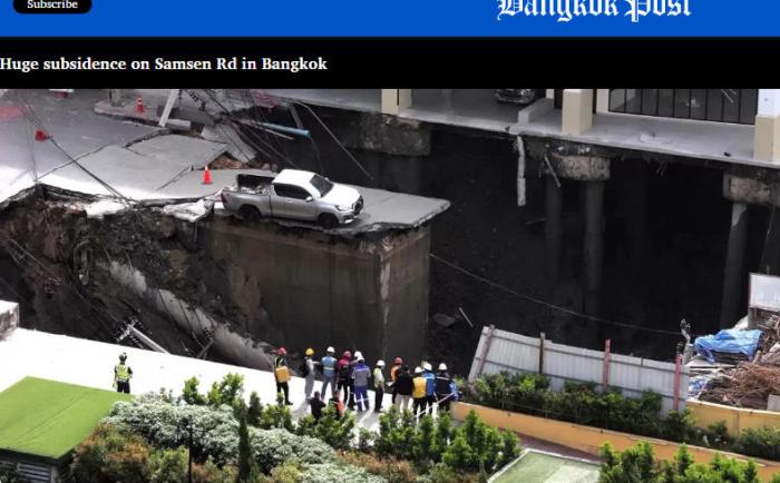 中新网9月24日电 据泰国《曼谷邮报》报道共享财富共享财富,9月24日上午,泰国曼谷一道路发生大面积塌陷共享财富,形成一个深约50米的巨坑。