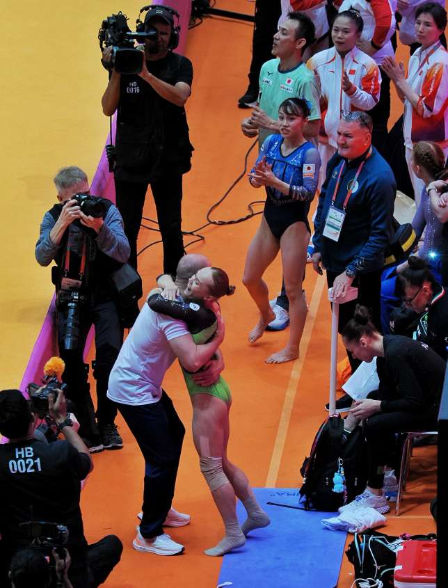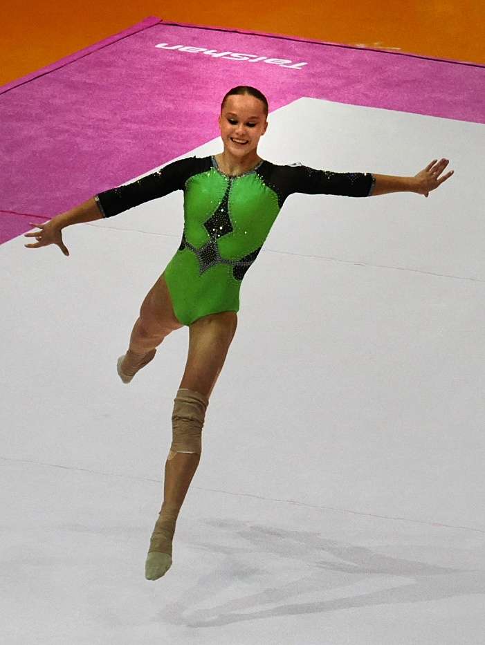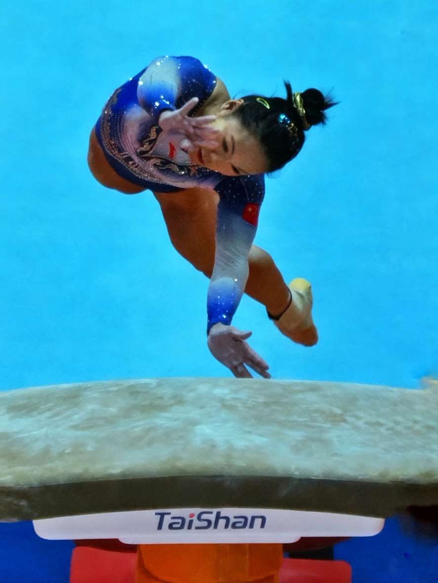 10月23日晚,第53届印尼雅加达世界体操锦标赛女子个人全能决赛结束 。中立运动员梅尔尼科娃以总分55.066分夺得金牌(图一至图三)。美国选手黄琳娜以54.966分获得银牌千汇网。