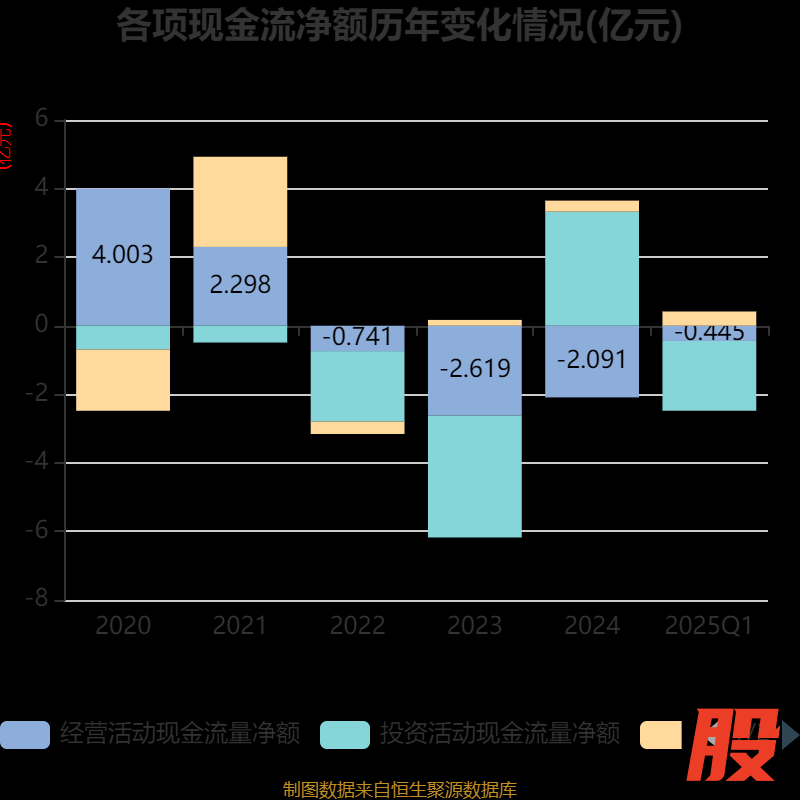 截至2025年一季度末启远网,公司经营活动现金流净额为-4447.66万元,同比增加3683.56万元;筹资活动现金流净额4145.86万元,同比减少2052.43万元;投资活动现金流净额-2.03亿元,上年同期为65.78万元。